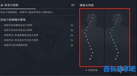 3、水平后坐力则分为单方向偏移和双向偏移,通过观察弹道分布图可以识别其偏移方向。