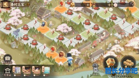 落地小路分岔口时,下一次投掷将会进入分岔路,分岔路的路程更短,也分布着更密集的春霞樱;落地山蛙格子时,山蛙将会带大人移动6个格子。