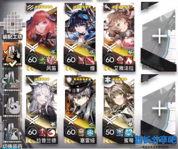 需求干员:风笛、拉普兰德、煌、塞雷娅、艾雅法拉、蜜莓