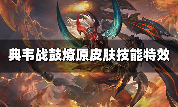王者荣耀典韦战鼓燎原皮肤技能特效是以火焰特效、各式兵器、旗帜等元素打造典韦无敌战神的勇猛形象。