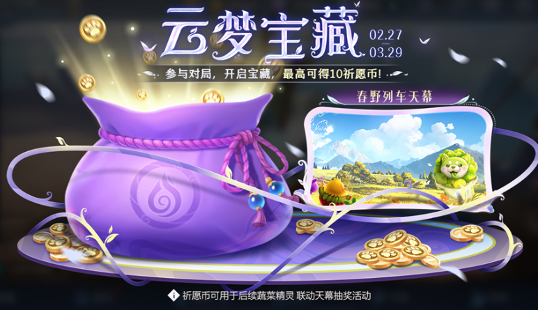 3、在云梦宝藏活动中可以使用10点券额外获得1-10个祈愿币,用于抽取春野列车天幕。