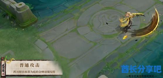 1、普攻特效:挥刃释出水墨底的金蝉羽翼纹样,溅起零星水墨。