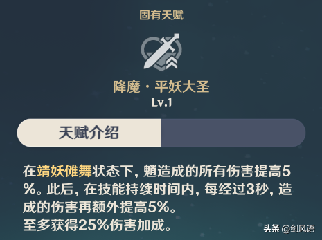 3.固有天赋【降魔·平妖大圣】,大招状态下,提升伤害,每3秒额外提升5%,12秒可以叠满25%伤害。