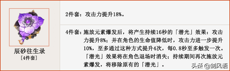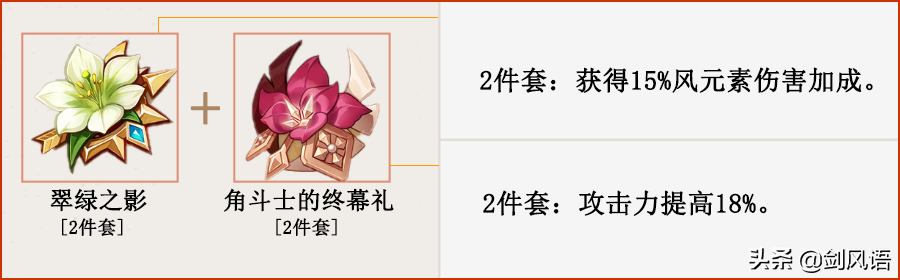 增加风伤和攻击力,作为次要选择,相对比4件套更容易获得。