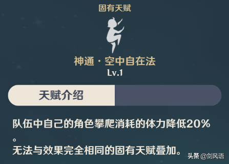 4.固有天赋【神通·空中自在法】,开荒大世界攀爬技能,收集素材清心和琉璃袋,比较方便。