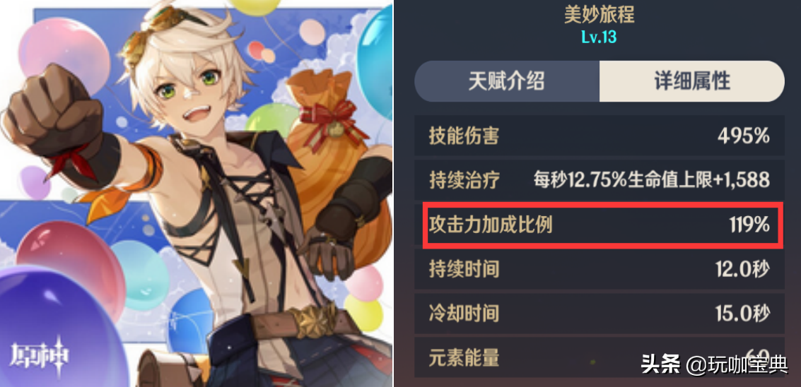 要说,班尼特好用,除了能奶之外,大招13级119%的攻击力加持,给得太多了,又是12秒持续覆盖,作为开服四星,属性给得很慷慨。(出完全体上位不太可能)