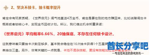 不仅抽数多得吓人,《世界启元》关于抽卡的设计也足以让人一惊,游戏不仅有低于同品类的20抽保底,还有高于同行的6.66%抽卡概率,而且在测试阶段,已经有众多玩家验证了游戏的的确确没有锁卡机制,官方公布的数据一切属实。
